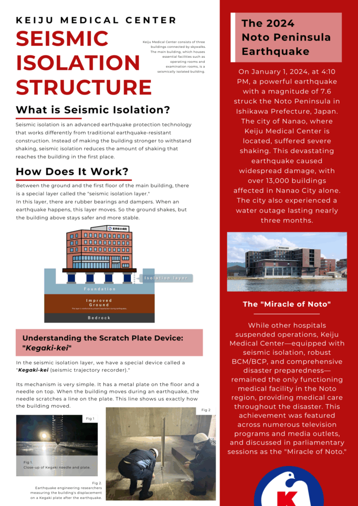While many other hospitals in the area were unable to perform surgeries, deliveries, or regular consultations, Keiju Medical Center — equipped with a seismic isolation system, robust business continuity planning (BCP), and dedicated multi-professional teams — continued comprehensive medical care on site, including emergency surgeries, childbirth, and outpatient services.